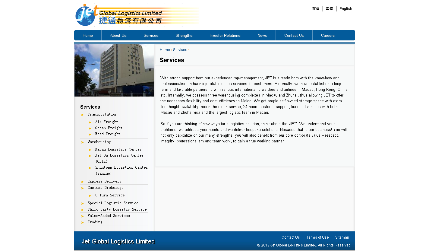 捷通貨運貿易網站制作